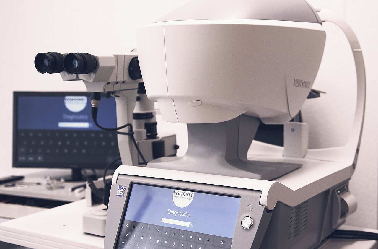 - Messung des Augeninnendruckes unter Berücksichtigung der Hornhautdicke für exaktere Messwerte